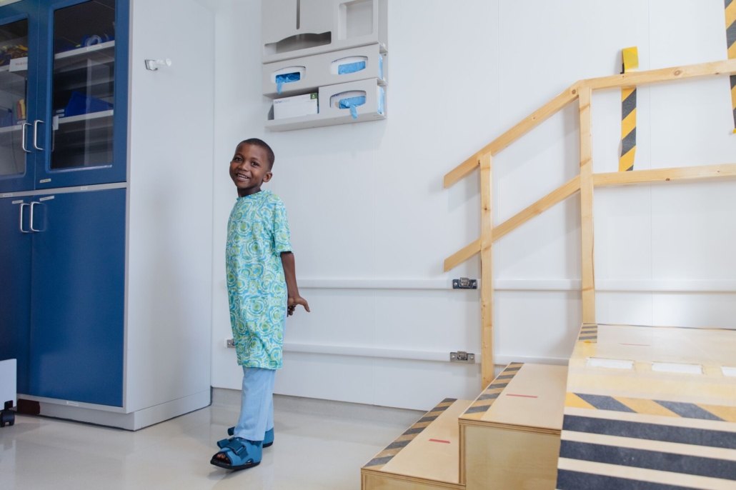 La rééducation d’Abubakarr a duré deux semaines et s’est concentrée sur l’amélioration de sa force, de son équilibre et de sa mobilité grâce à des exercices ciblés et des séances de thérapie ludiques.
