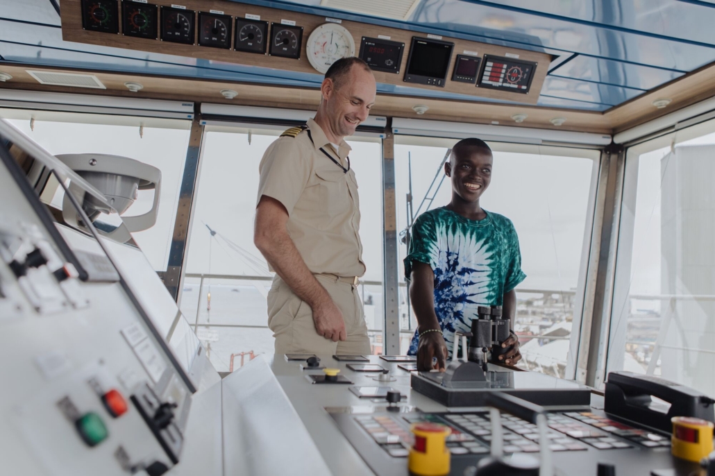Capt. Lawrence graciously gave him a tour of the bridge and let him sit in the captain’s seat. “It’s not everyone that gets the opportunity to see the captain and take pictures with him, so I am very grateful,” said Mohamed.